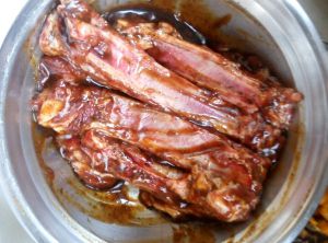 烤肉酱与猪肋骨抓匀 腌制三小时以上