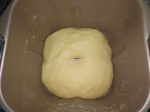 面团揉圆放温暖处进行第一次发酵。发酵时间一般为1个小时左右。