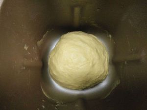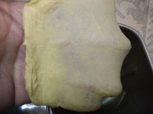 除黄油以外的面包材料全部放进面包机揉至粗膜,再加入黄油继续揉至能拉出透明薄膜即可。