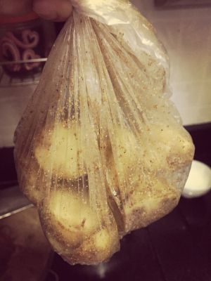 放在保鲜袋里抓啊抓,这样比较好混合入味,腌上一会儿,我是晚饭后腌,大概腌了两个小时吧