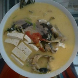 昂刺鱼去内脏、腮清洗干净备用;豆腐切小块;生姜及大蒜切末。