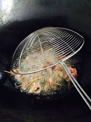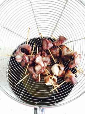 炸至表面紧缩,猪心成熟,捞出沥油。