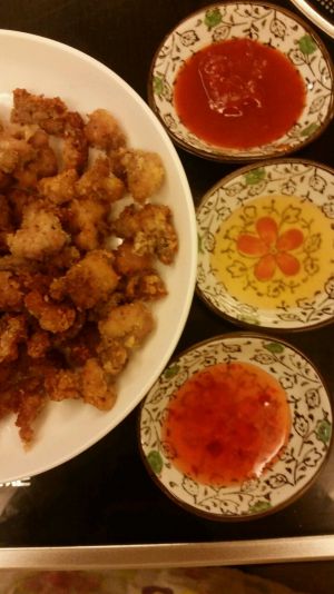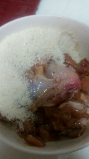 加点淀粉,还有面包糠裹匀,下油锅炸。金黄捞出。