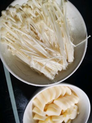 日本豆腐切块 金针菇切掉头 洗净 葱洗净切葱花(未拍)