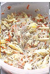 加入韭菜段,粉丝拌匀就是今天的五素水饺馅料啦(也可以根据自己的喜好加入蘑菇 菠菜 芹菜等蔬菜)。