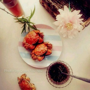 每个螃蟹身上盖个姜片……有紫苏包也是极好的!