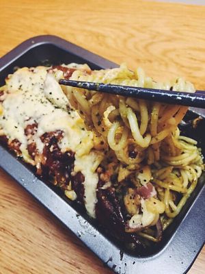 黄油爆香洋葱,下意面和罗勒酱翻炒,加牛奶,将酱汁颜色炒到奶绿色,咕噜咕噜冒泡的时候放烤箱,把鲭鱼放在上面,撒上芝士,200度10分钟,焗后撒一些黑胡椒碎增添风味~简单不能再简单啦~
