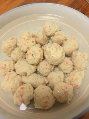 马上吃则对它继续加工,不马上吃就把丸子速冻起来,下次拿出来不用解冻直接煮即可。
