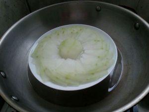 锅注入清水烧开、将摆好盘的冬瓜放入锅隔水蒸10分钟至冬瓜熟透出锅。