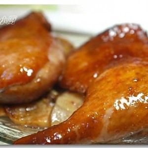 面,表面撒上黑胡椒碎(我用的黑胡椒粉).然后入烤箱烤15分钟后,翻身,刷一遍蜜汁烤肉酱,改200度烤15分钟,取出刷蜂蜜,再烤5分钟就好了.