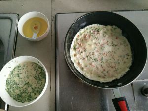 面粉里面加适量的盐。葱要最后放到面粉里面