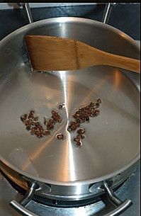 鍋燒熱,放油,把花椒用小火煸香后,撈出扔掉(你不想吃的時候咬到花椒吧)。