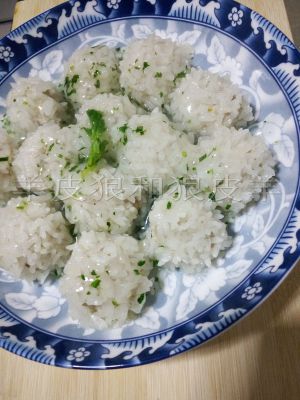 炒锅上火烧热放清水或鸡汤,放少许盐、鸡精调味,水淀粉勾琉璃芡,下入香菜末后淋在丸子表面。哦磕了~