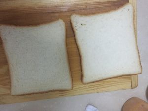 吐司片用刀切去边缘,也可以不切,我不太喜欢吃边边就切掉了