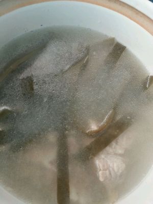 海带洗净,切宽条,断成约一指长,煮半熟段生