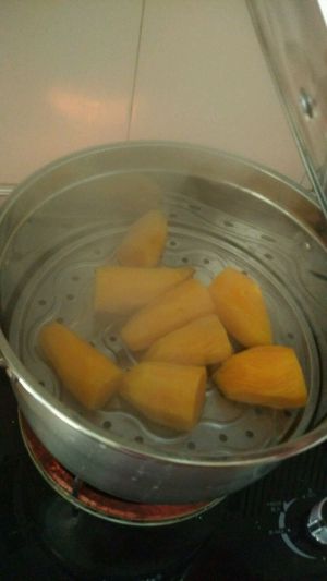 糯米粉细砂糖牛奶炼奶红薯泥放在一起搅拌成面团