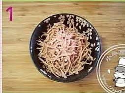剔下烤鸭上残留的鸭胸肉、腿肉等,撕成肉丝;