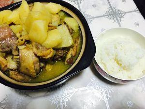 我熬了一个小时左右吧!前半个小时是大火熬的!后来改小火熬制半个钟头!中途把土豆也放了进去!不喜欢的土豆的盆友可以放榛蘑,山药,都可以!土豆放的久一点可以熬出土豆泥了!绵绵的!