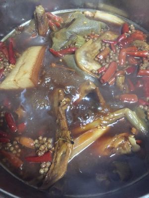 按照配料把香料配齐,用纱布袋装好加水放锅里煮30分钟。煮好后放凉水里侵泡10分钟备用(辣椒、葱、花椒除外)