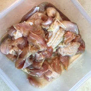 琵琶腿去骨用料酒、葱姜蒜粉腌制15分钟