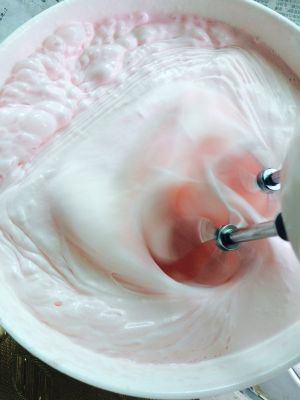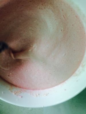 15分钟后,用打蛋器高速按同一方向搅打5分钟左右,观察其已膨胀,已十分浓稠。