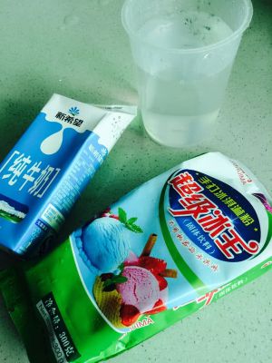 倒入一整袋冰淇淋粉,用筷子搅匀,并静置15分钟,使其充分溶解。