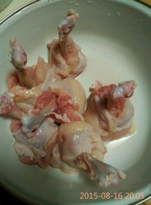 鸡翅根用清水泡会儿洗净~然后用刀将在细头的那面环形切割下~露出一截骨头~~再用牙签或者叉子将肉多的地方多戳戳~这样才能更好的入味