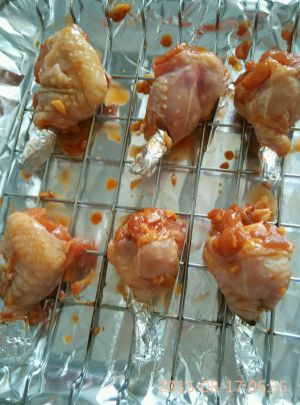 将鸡翅根裸露的骨头处用锡纸包好~这样烤出来了可以直接拿着吃而手却比较干净!刷上一层蜂蜜摆放到烤架上~烤盘里垫上锡纸~烤箱上下火200度左右~烤30分钟~烤架放到中间~烤盘放到最下面~这样可以接着滴落的汤汁