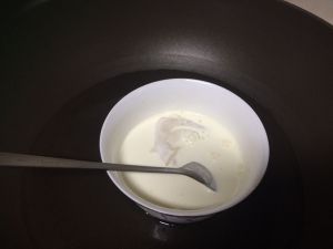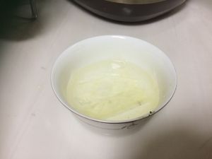 取100g豆浆或牛奶或淡奶油,将软化的吉利丁片放入,隔水融化!(希望豆香味浓一些的放豆浆,奶香味浓一些的放淡奶油,牛奶折中。)