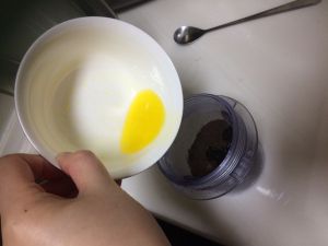 继续用电动打蛋器打至顺滑。(因为后面要过筛,所以豆腐就整块放入。绢豆腐水嫩,搅两下就碎了。)