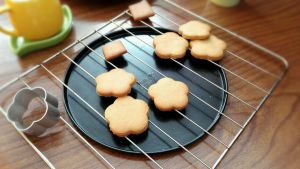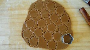 松弛好的面团擀成约0.5CM厚的面皮,用模具压成图案。