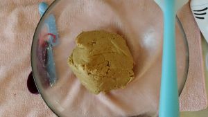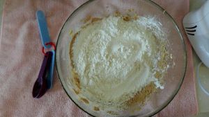 低筋面粉,奶粉,小苏打,盐混合,筛入黄油中,翻拌成面团。