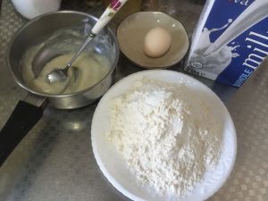 准备主要材料,高筋面粉,牛奶,鸡蛋和放凉的汤种。