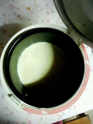 洗好以后放入电饭煲,打到粥汤档,熬大概二十分钟,想要稀一点可多加水