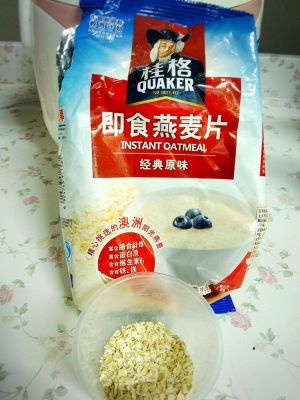 打开电饭煲尝一下,如果玉米渣差不多软了,加入燕麦片,这里我用的是桂格的即食燕麦片,也是加了差不多40ml