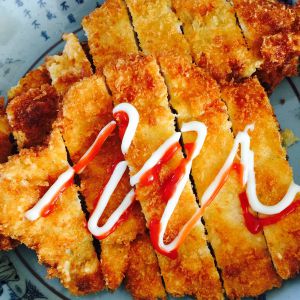最后,可以在炸好的鸡排上用沙拉酱和番茄酱画上美美的图案哦~香喷喷的鸡排就做好了~是不是超级简单呢~