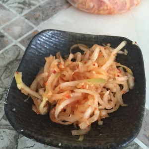 白萝卜或红萝卜都可以,我用了一个白萝卜比较脆,用工具擦成丝,两勺盐腌软,盐量可以改,根据自己口味