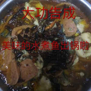 最后大功告成,美味的水煮鱼就做好了,如果有怕吃鱼的时候会吃到麻椒你可以在倒油的时候中间放个过滤的勺子。