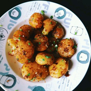 锅内加入油,放入土豆煎至两面金黄,在土豆上均匀的撒上孜然粉,椒盐,待香味四溢时即可起锅,香喷喷的孜然土豆就大功告成了。