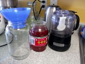 红油豆瓣酱一瓶,干净干燥的玻璃瓶一个,因为花花对塑料容器装酱料有障碍,所以会换成玻璃瓶。