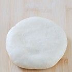 取一份攒成团的豆沙团放入按扁的面团上,包起来,收口朝下,按扁,擀开.