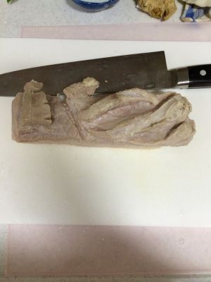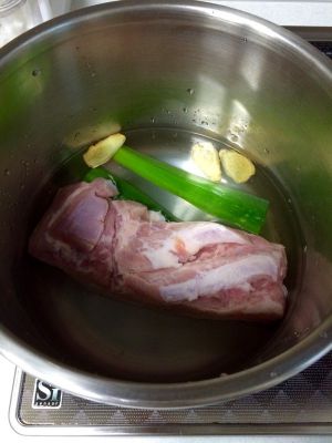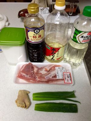 材料就这些,日式豚角煮用的是不带皮的五花肉。姜切三片就够了。