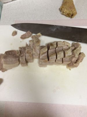 将五花肉切1cm左右厚的块。