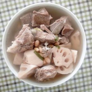 哎呀,蒸汽不断的往上冒,拍不清楚了。 排骨和花生一起煮大概20分钟左右,放入准备好的藕(斜刀块)!大火烧开,换小火慢炖,之后就准备等着煮好放调料起锅!
