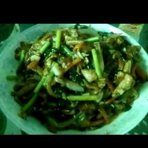 炒半熟然后把肉也放进去翻炒,熟了以后,倒入汤汁,翻炒几下就好了。