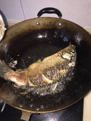 炸鱼,炸之前把腌制的鱼再用水冲一遍,用厨房用纸把身上的水擦擦,防止炸的时候溅油。炸的程度自己随意,别焦了就行,哈哈!