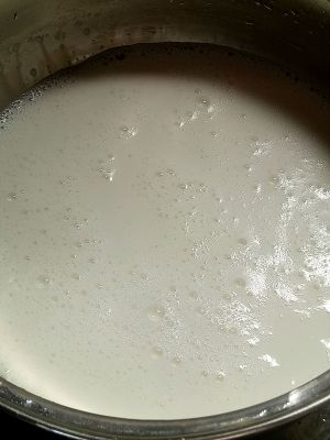 倒入锅里小伙加热,我加了两勺白糖