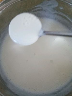 这个勺子我用了一勺糯米粉加水,放入锅里搅拌