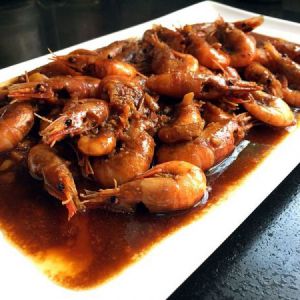 起油锅把大蒜和生姜先下锅爆香,再把虾全部倒入。