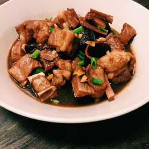 大火烧开后改小火煮至排骨入味,汁水粘稠后,撒上葱花即可